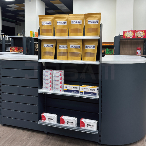 Anpassbare 2700x2180x910mm Metallic Checkout Counter Supermarkt Gondel regale für Supermärkte